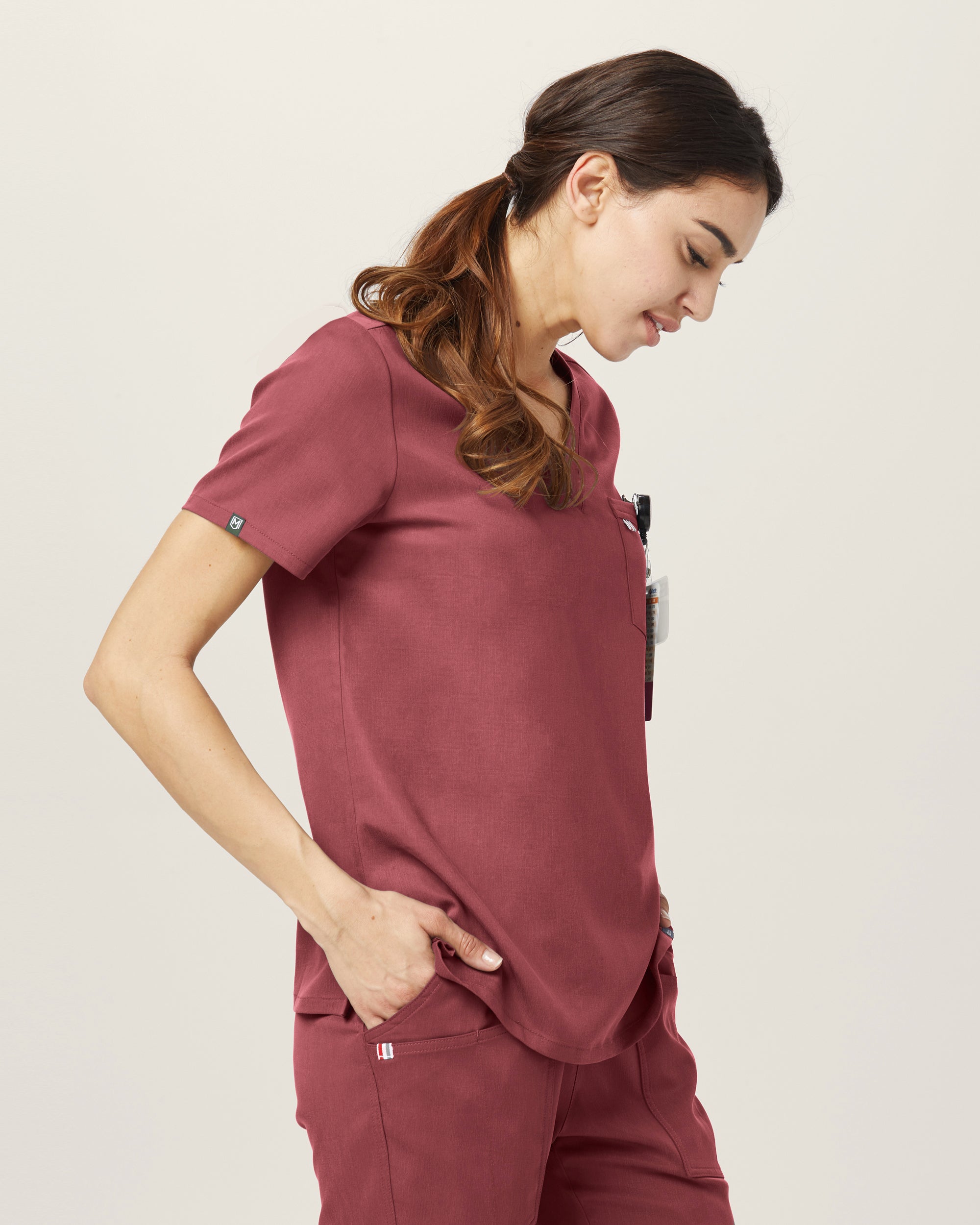 Our simple but classic Sal top is a staple for every closet. Featuring a flattering V-neck and single chest pocket, it's no wonder this is a bestseller and sure to become your everyday essential. Constructed with TENCEL™ Lyocell fibers to inhibit bacterial growth, and provide breathability, and enhanced comfort.