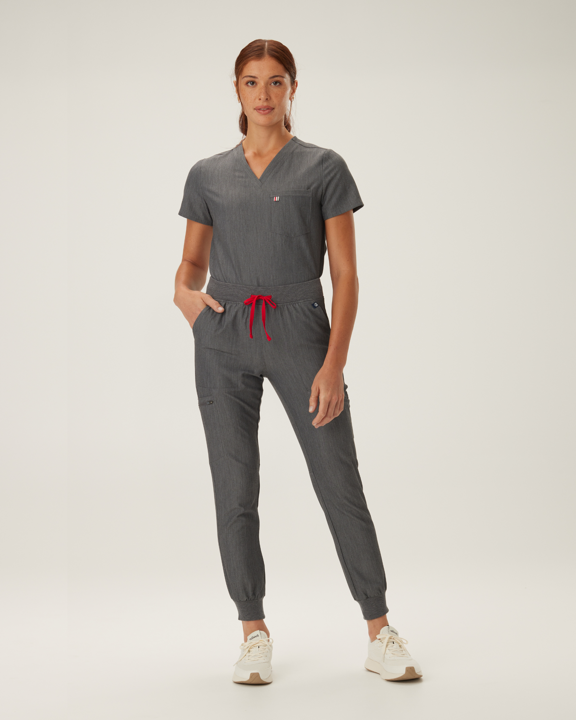 - Modern, comfortable V-neck design
